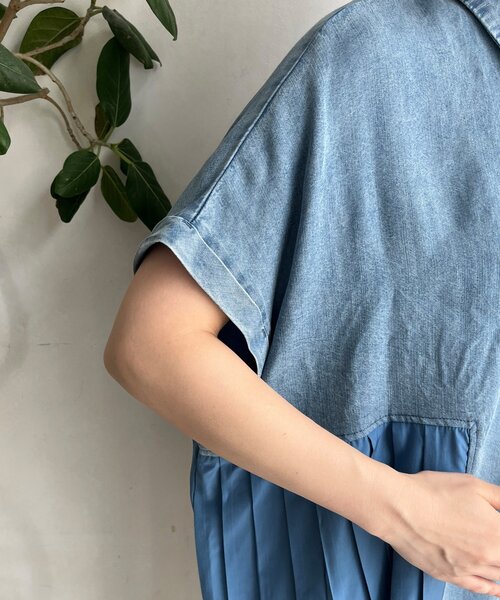 完売カラー スカイブルー DOUDOU/ドゥドゥ リヨセルデニムバック切替シャツ 完売カラー スカイブルー DOUDOU/ドゥドゥ リヨセルデニムバック