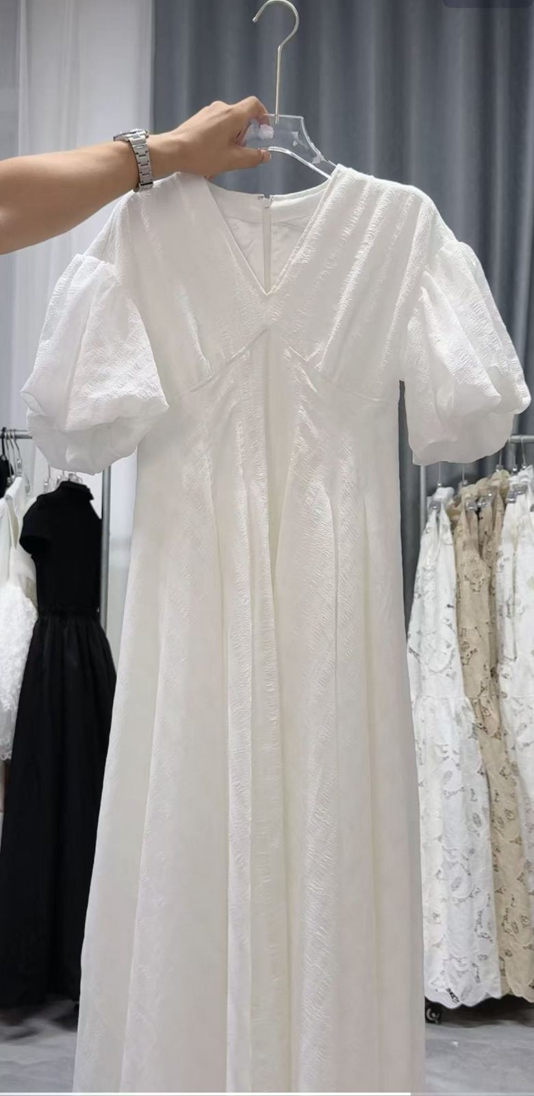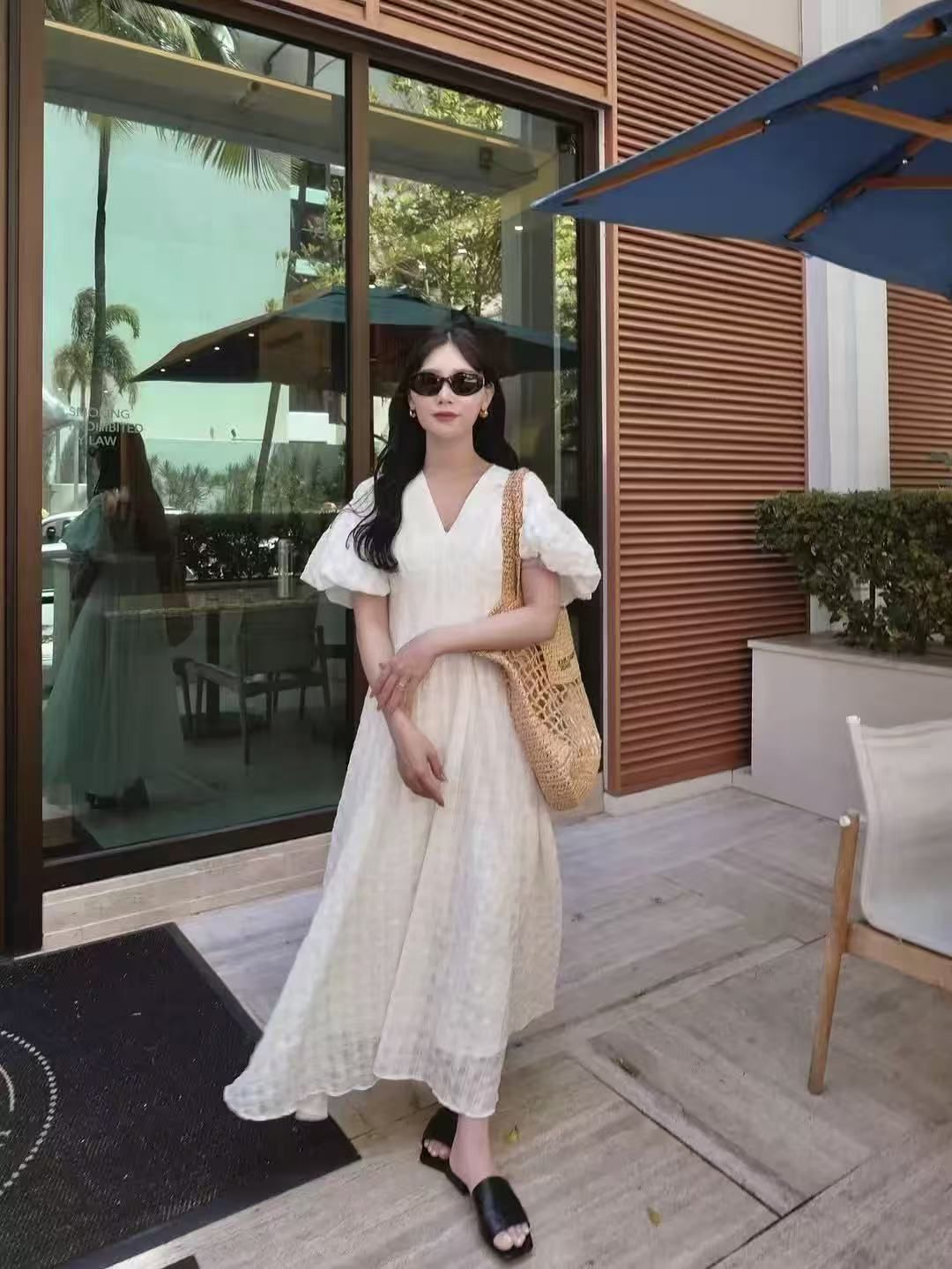 ワンピース acka airy check puff one-piece airy check puff one-piece – Acka online store